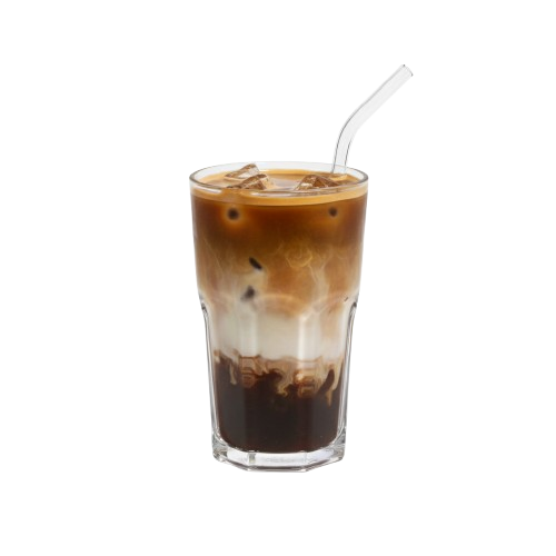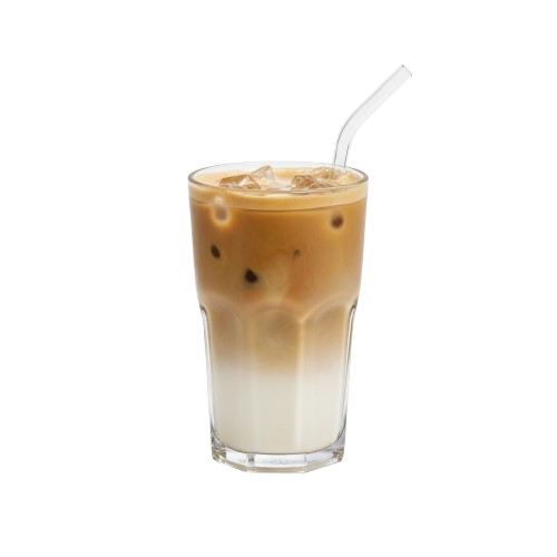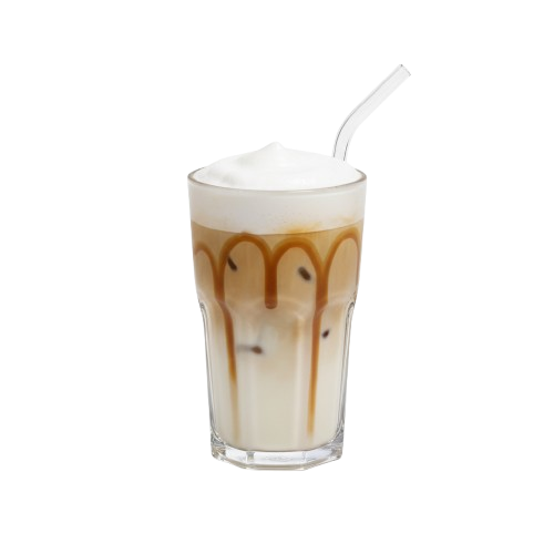 اسپرسو + شیر + سیروپ کارامل + یخ