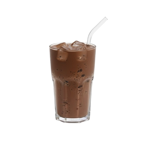 شیر + پودر کاکائو + شکر + یخ + سس شکلات